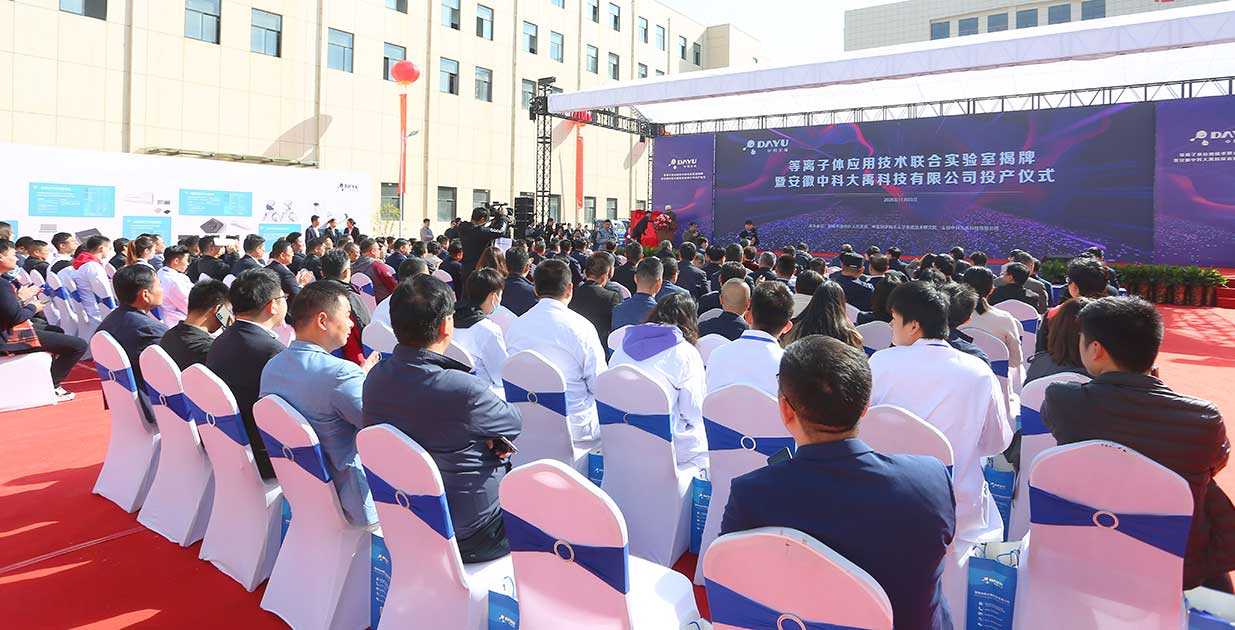 2020年11月3日上午,等離子體應用技術聯合實驗室揭牌暨安徽中科大禹科技有限公司投產儀式舉行。中國工程院院士劉文清,市二級巡視員吳中堯,中國疾病預防控制中心消毒檢測中心首席專家張流波出席。